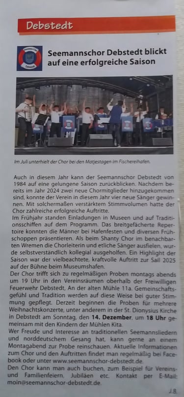 Herzlich Willkommen auf der Seite des Seemanns-Chor Debstedt.