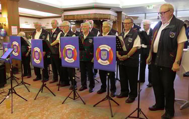 Zu bestimmten Anlässen spielt dann auch die „Band“ vom Seemanns-Chor auf, mit Akkordeon, Schlagzeug, Bass, Rhytmusgitarre, Saxophon und Gesang.